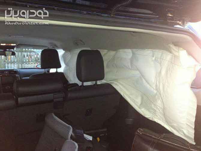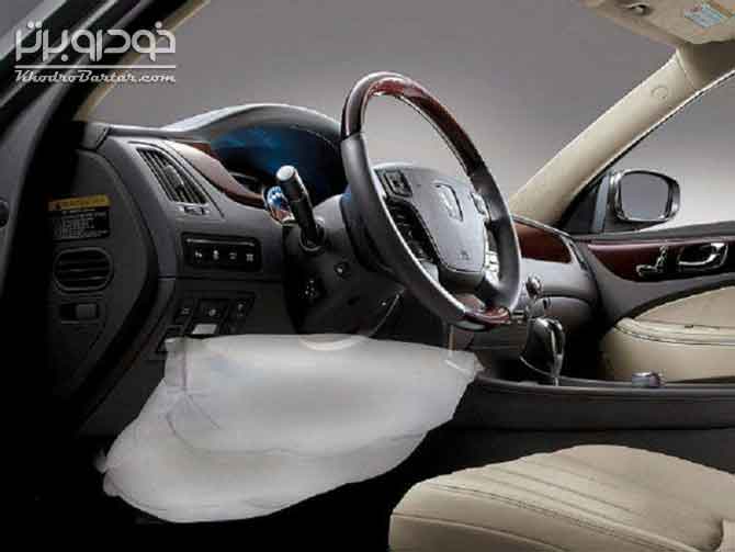 -ایربگ مانع از برخورد سرنشینان به اشیا سخت مانند فرمان و داشبورد میشود